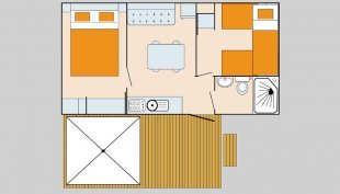 De Sunset Deluxe is al jaren favoriet bij families op camping Sant Angelo. Deze ruime stacaravan is geschikt voor 6 personen en beschikt over 2 slaapkamers, volop opbergruimte, een compleet ingerichte keuken met grote koelkast (incl. vriesvak) en een 4-pits gasfornuis.