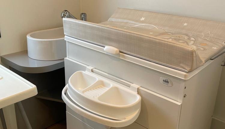 Speciaal voor kersverse gezinnen biedt camping Spiaggia e Mare de luxe stacaravans Gusto Baby. Deze stacaravans zijn van hoge kwaliteit, luxe ingericht en voorzien van babyfaciliteiten. De babykamer kan met een schuifwand worden afgesloten van de ouderslaapkamer voor extra privacy.