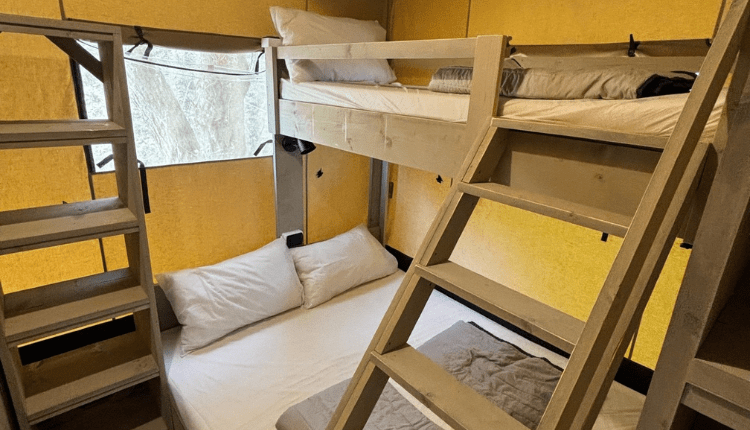 De Safaritent Gusto Premium heeft een ouderslaapkamer met een tweepersoonsbed en een kast. De 2e slaapkamer heeft een tweepersoonsbed met een stapelbed (1-persoonsbed) erboven. Het bedlinnen dat u hiervoor nodig heeft is een 2-persoonsset en eventueel nog een 1-persoonsset.