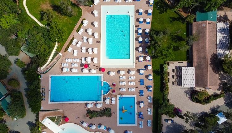 Het hart van de camping is het centrale gebied van ongeveer 10.000 m². Hier liggen de 4 zwembaden van de camping en het waterpark met glijbanen voor de kinderen.