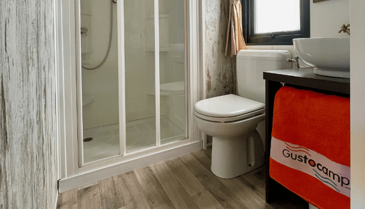 Beide slaapkamers van de stacaravan Savanna Deluxe hebben een eigen en suite badkamer met douche, wasbak en toilet. Meer luxe en comfort kan bijna niet!