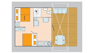 Slaapkamers: Eén slaapkamer met een 2-persoonsbed en een kast; tweede slaapkamer met één 1-persoonsbed en een stapelbed.