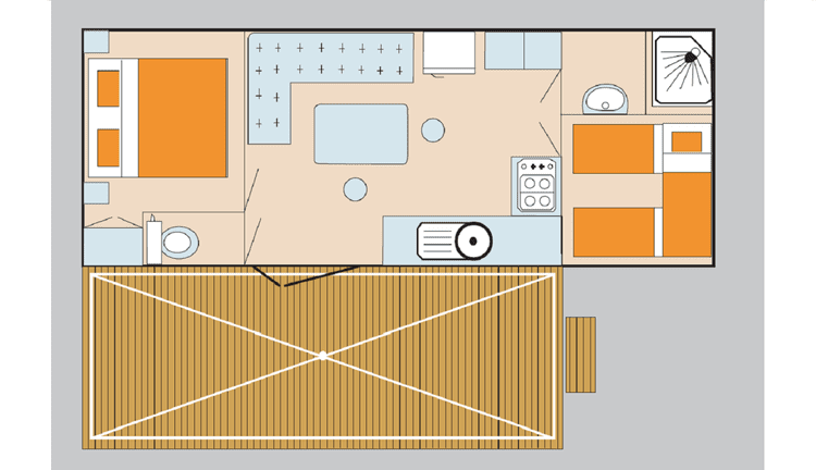 *De mobilehomes Sunset op camping Union Lido hebben geen apart toilet. Op camping Spiaggia e Mare hebben enkele modellen geen apart toilet.